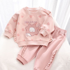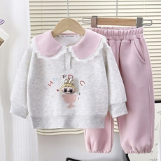 女宝宝卡通花边卫衣套装2025春季新款女孩休闲洋气娃领运动两件套