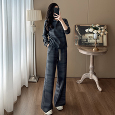 通勤户外运动白色上衣休闲阔腿裤两件套装女士2026春季搭配一整套