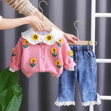 【甜美大翻领】童装女宝宝春季休闲运动套装小童卫衣两件套春秋款