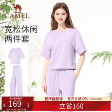 骆驼运动套装女士2025春季纯色套头衫卫衣长裤卫裤休闲跑步两件套