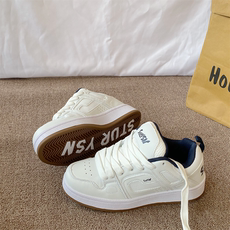 韩版情侣款白蓝色面包鞋男女同款2025秋季新款百搭运动休闲板鞋子