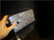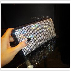 真皮零钱包 镶钻水钻手拿包 满钻拉链长款钱包 韩国女士钱包 免邮