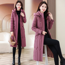 长款羽绒棉服修身显瘦连帽时尚洋气加厚新款冬季过膝棉衣外套女