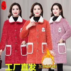 2025新款女装宽松三层加绒加厚保暖中长款棉罩衣家居服棉袄工作服