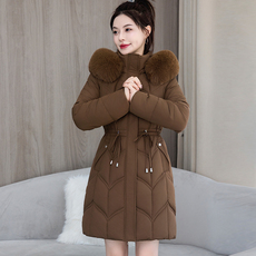 冬季新款棉衣女中长款过膝收腰棉服洋气中年妈妈大码加厚棉袄外套