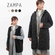 [商场同款]LANDI撞色设计连帽真丝填充棉服中长厚外套女秋冬新品