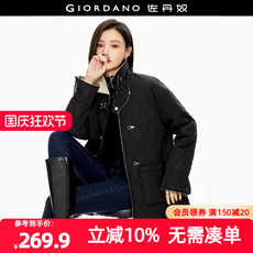 佐丹奴外套女装格纹梭织可立领宽松中长款棉衣外套 18373915