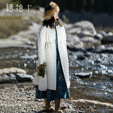 文艺复古国风印花中长款加厚棉服女冬季新款立领盘扣夹棉百搭外套
