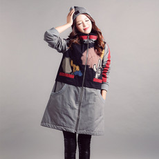 园园美衣新款全棉夹棉外套女内里加厚羊羔毛棉服女宽松中长款1
