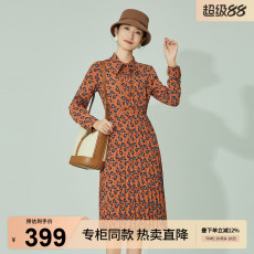 乔万尼商场秋商场同款女装喜宴连衣裙简约优雅红色蕾丝喜宴中长裙