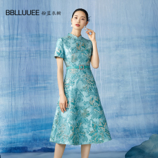 罗衣优雅荷叶袖连衣裙女2025夏装新款绿色修身鱼尾摆中长裙06274