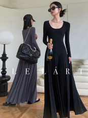 2025春秋新款莫代尔拖地连衣裙女高级感超长款气质大摆裙百褶长裙