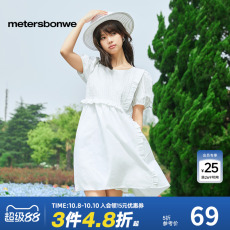 芬腾女士睡裙夏季纯棉短袖睡衣中长裙新款透气可外穿家居服连衣裙