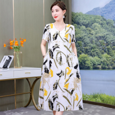 中老年新款棉绸睡裙女夏季时尚加肥加大睡衣人造棉连衣裙过膝长裙
