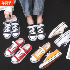 春秋季新款百搭黑色韩版帆布潮牌休闲鞋潮流学生鞋低帮女鞋 情侣