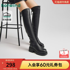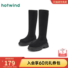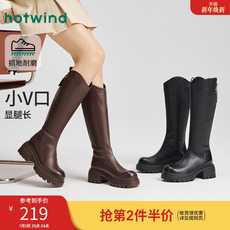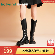 热风厚底骑士靴2025年冬季新款黑色长筒靴百搭增高时装靴子女鞋