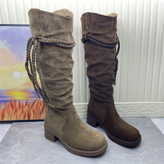 超火粗跟长筒靴子女2025冬季新款复古时尚高筒瘦瘦靴高级感骑士靴