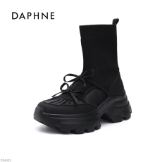 Daphne/达芙妮女鞋休闲鞋2025新款冬季袜靴厚底增高6cm韩版瘦瘦靴