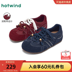 热风薄底休闲鞋女款2025年冬季新款复古红色德训鞋百搭运动女鞋子