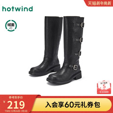 热风黑色骑士靴女鞋2025年冬季新款时尚百搭长靴户外酷帅粗跟靴子