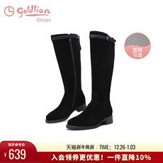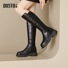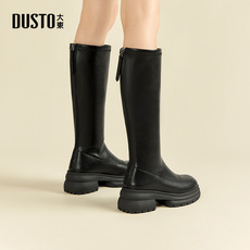 大东骑士靴女鞋2025年冬季新款粗跟高跟后拉链圆头长筒靴D0131