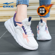 鸿星尔克女鞋新款春冬季加绒皮面防水鞋子女款二棉鞋冬季运动鞋女