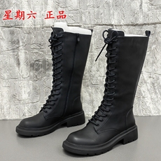 大东长筒靴女鞋2025冬季新款粗跟后拉链靴子骑士靴0127E