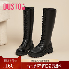 大东骑士靴女鞋2025年冬季新款简约粗跟中跟侧拉链圆头厚底长筒靴