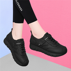 冬季新款女鞋黑色跑步运动鞋百搭轻便平底鞋皮面防水休闲旅游鞋女