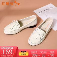 红蜻蜓女鞋春秋款中年妈妈鞋真皮浅口皮鞋软面软底通勤平底单鞋女