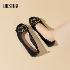 女士鞋子平底单鞋2025春秋新款韩版浅口方头奶奶鞋百搭平跟豆豆鞋