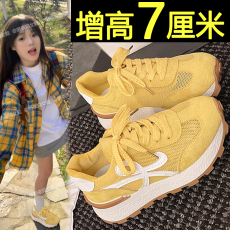 女鞋子秋季网面透气2025新款小个子厚底增高休闲运动老爹鞋ins潮