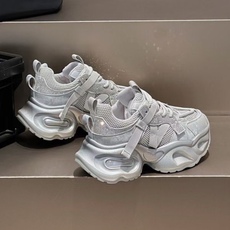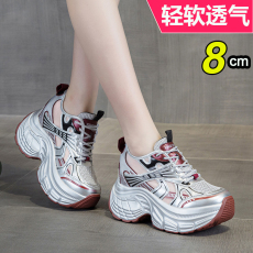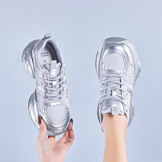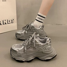 厚底老爹鞋女2025夏季新款女款网面透气女鞋银色内增高休闲运动鞋