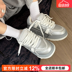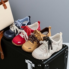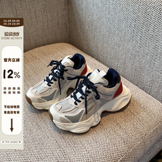 断码处理真皮女鞋2025秋季新款厚底耐磨网面透气运动老爹鞋休闲鞋