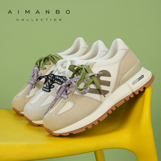 柏育兰大码女鞋2025秋真皮网面透气系带休闲德训鞋运动鞋阿甘鞋42
