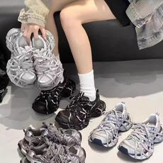 巴迪雅女鞋2025秋新款欧洲站网面透气户外厚底运动鞋女老爹鞋6302