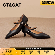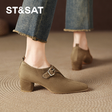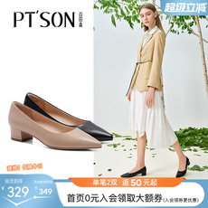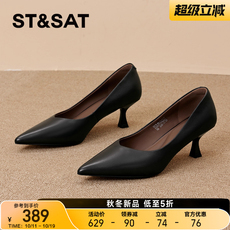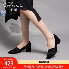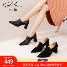 星期六真皮羊皮尖头中跟单鞋2025新款深口粗跟女士女款皮鞋女鞋子
