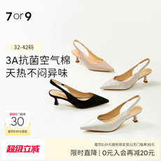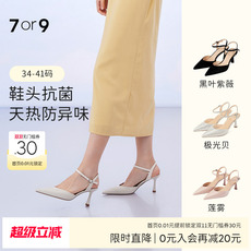 7or9凉鞋女鞋夏白色高跟鞋裸色羊皮漆皮包头尖头后空通勤单鞋椰子