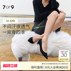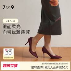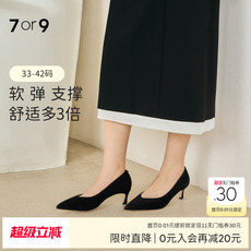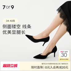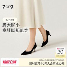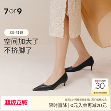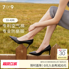 7or9女鞋黑色高跟鞋大码春夏款真羊皮尖头通勤职业浅口单鞋黑松茸