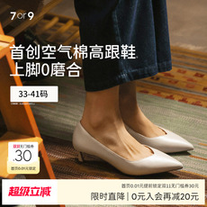 7or9白色高跟鞋女鞋秋冬裸色大码羊皮猫跟尖头通勤单鞋女婚鞋茉莉