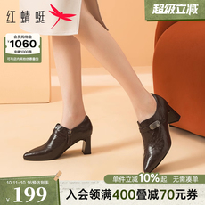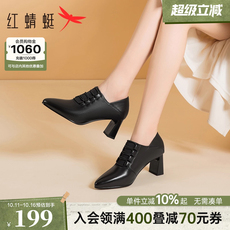红蜻蜓皮鞋女款鞋子秋季女鞋气质不累脚高跟鞋复古尖头羊皮单鞋