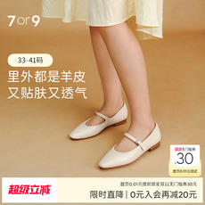 刘雯同款7or9玛丽珍女鞋尖头羊皮舒适通勤平底鞋浅口单鞋女牛轧糖