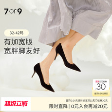 7or9女鞋黑色高跟鞋大码静音羊皮尖头舒适胖脚宽通勤浅口单鞋黑茶