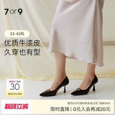 7or9女鞋黑色高跟鞋大码春夏款羊皮细跟尖头通勤职业浅口单鞋黑啤