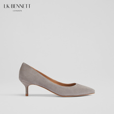 lkbennett通勤灰色低跟单鞋子女2024新款尖头浅口绒面羊皮细跟5cm