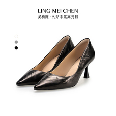 LINGMEICHEN超软羊皮不累脚高跟鞋气质高级V口尖头猫跟鞋轻奢女鞋