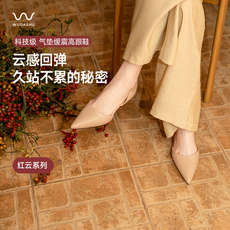 吴大叔红云鞋2025秋冬通勤尖头气垫缓震单凉鞋气质羊皮高跟女单鞋