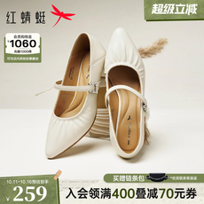 红蜻蜓单鞋女2025秋季新款女鞋尖头粗跟皮鞋羊皮白色玛丽珍高跟鞋