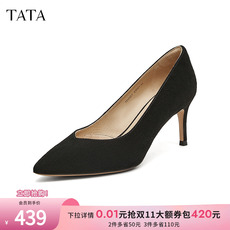 TATA他她黑色气质高跟鞋女鞋尖头低跟羊皮单鞋2025春新款7DDD7AQ5