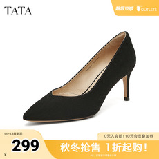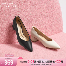 TATA他她黑色气质高跟鞋女鞋尖头低跟羊皮单鞋2025秋新款7DDD7AQ5